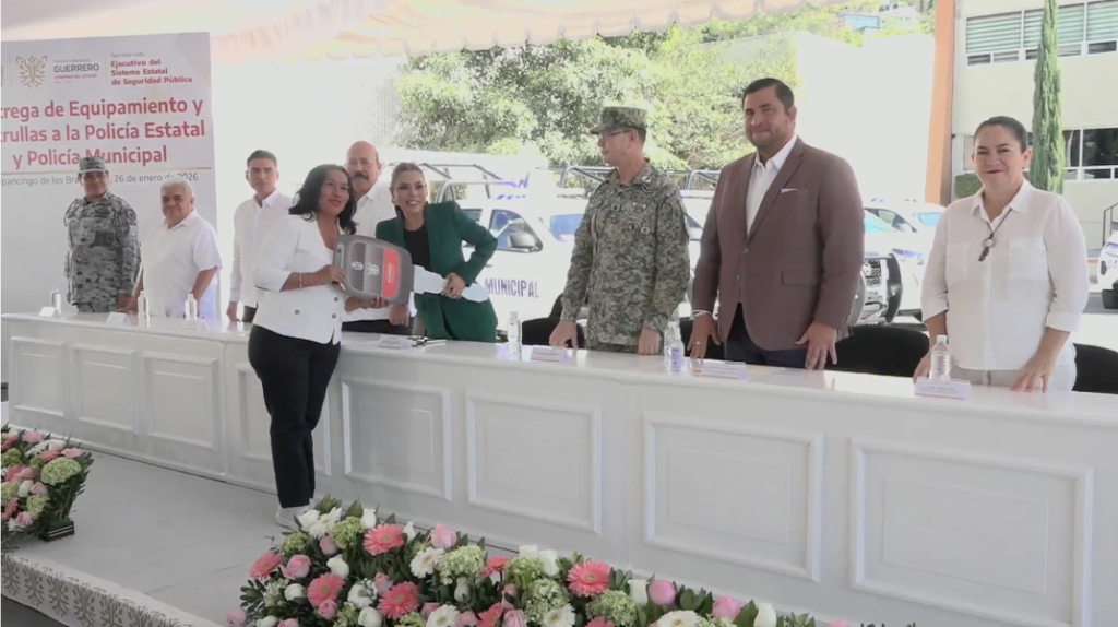 Chilpancingo, Gro., 26 de enero de 2026.- La gobernadora Evelyn Salgado Pineda encabezó la entrega de equipamiento y patrullas a elementos de la Policía Estatal y Municipal, como parte de las acciones para fortalecer la seguridad pública en Guerrero y mejorar la capacidad operativa de las fuerzas de seguridad.
